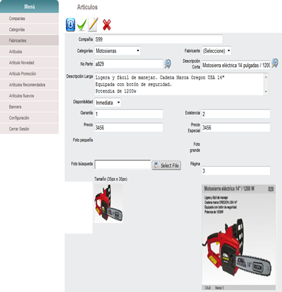El mismo usuario es capaz de administrar los productos que se mostrarán a los clientes potenciales en cada sección del portal de venta. La administración se puede hacer fácilmente ya que el sistema se encuentra totalmente parametrizado.